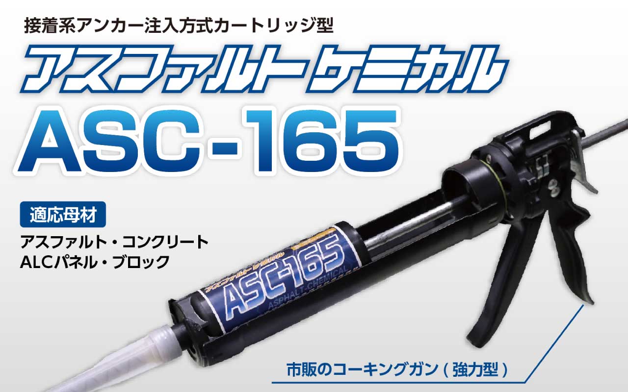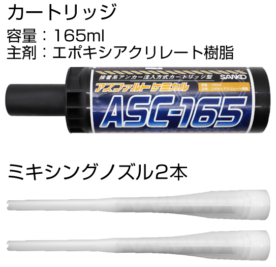 各種母材へのアンカー固定に使用できる、サンコーテクノ社の「アスファルトケミカル ASC-165」。